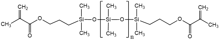 UC-2821是雙端甲基丙烯酰氧丙基二甲基硅基封端的聚二甲基硅氧烷,具有自由基聚合、 UV光固化等特性,可以與各種含碳碳雙鍵單體或預聚體共聚合,將聚硅氧烷鏈節引入聚合物主鏈。